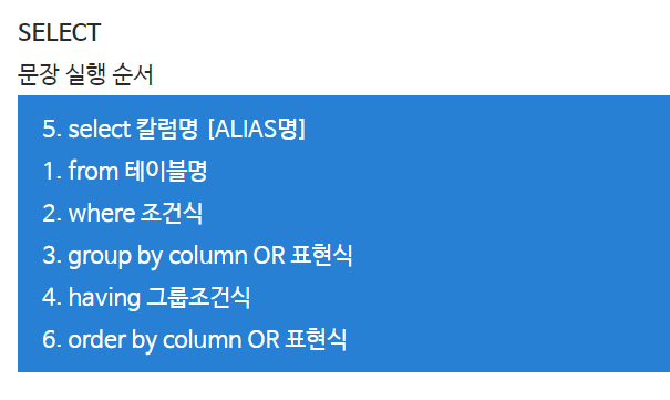 select 문만 정리해보려고 한다.